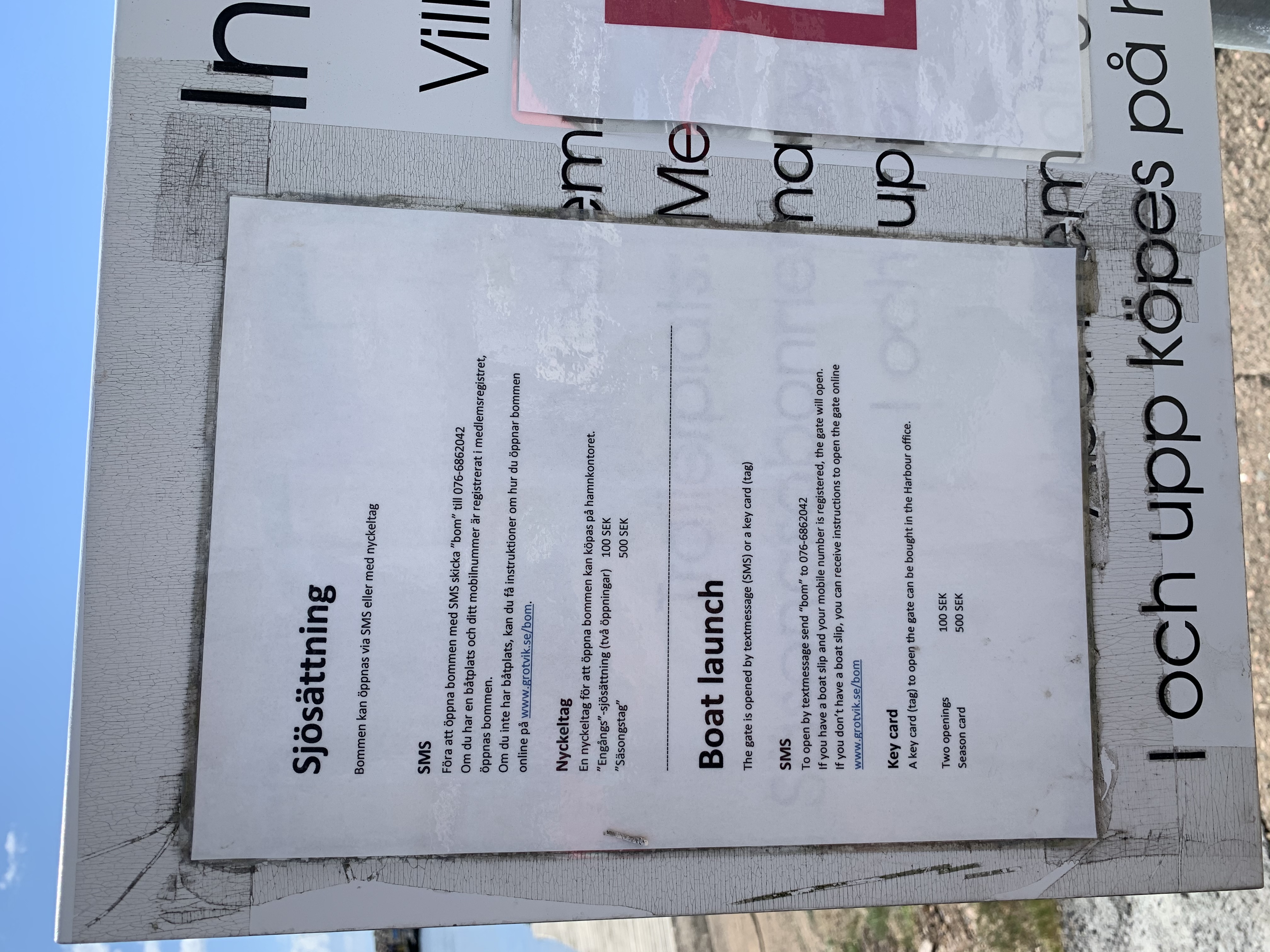 Enstaka öppningar köps med sms eller via http://www.grotvik.se/bom/. Information: Bra ramp med parkering för både bil och trailer. Kan bli trångt under högsäsong. Lank: http://www.grotvik.se/bom/