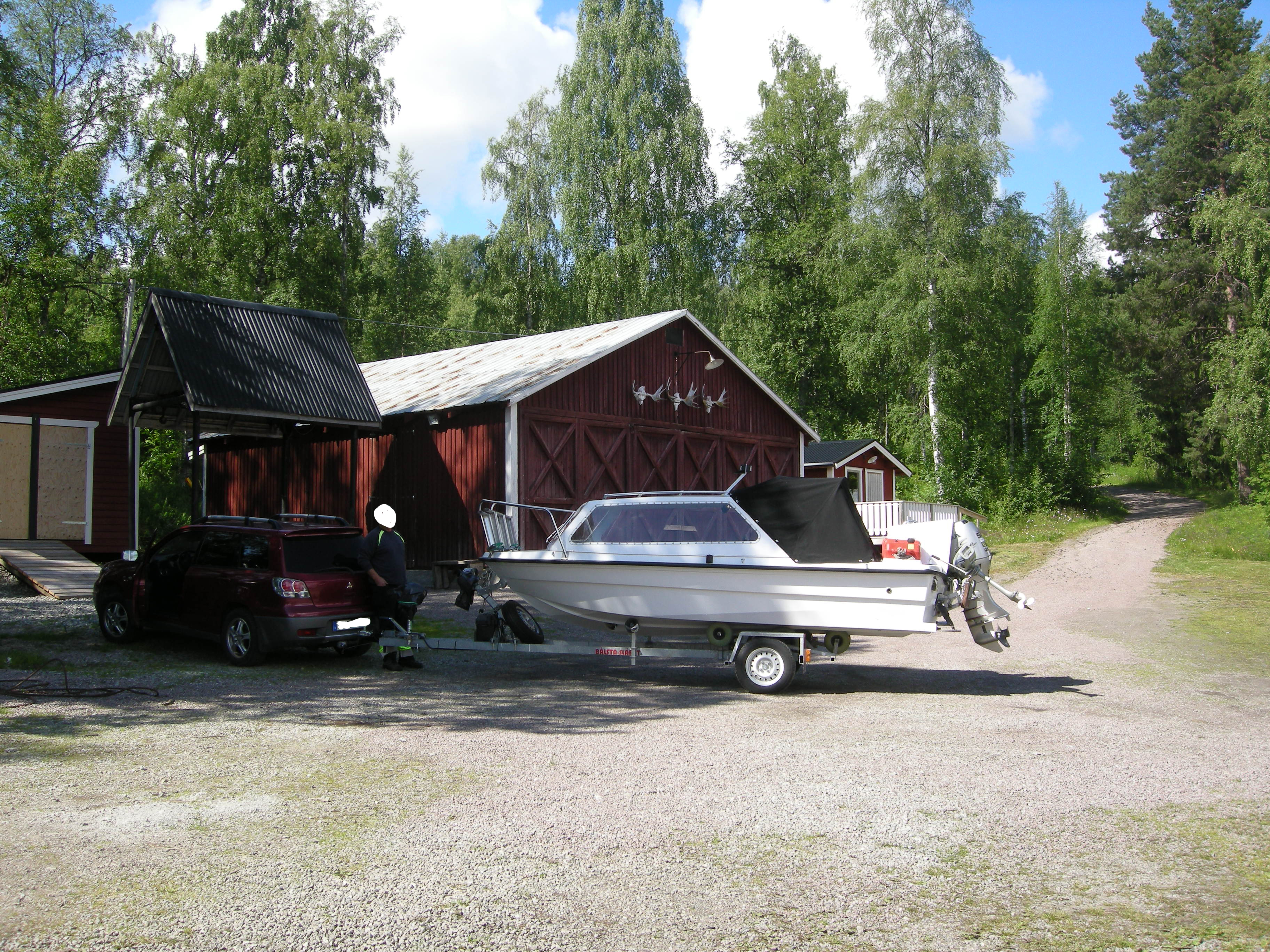Bra lutning på rampen, stenbrygga vid sidan om rampen, parkering på en gräsplan ca 100 meter från rampen.